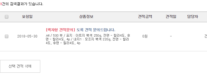 마이페이지 > 주문 정보 > 견적내역에서 견적 요청 진행 상황과 결과 및 내역을 확인하실 수 있습니다.